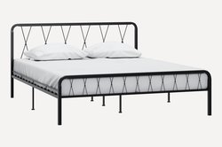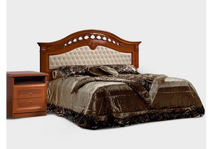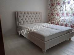 Двуспальная кровать с ортопедическим основанием и мягким изголовьем.