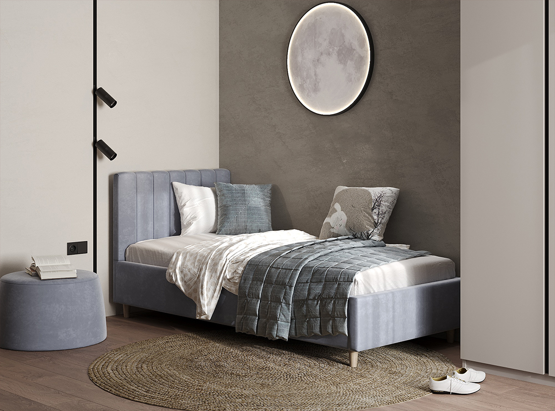 Спальное место (ДхШ): 200х90 см. Материал: МДФ, ЛДСП, фанера, микровелюр.