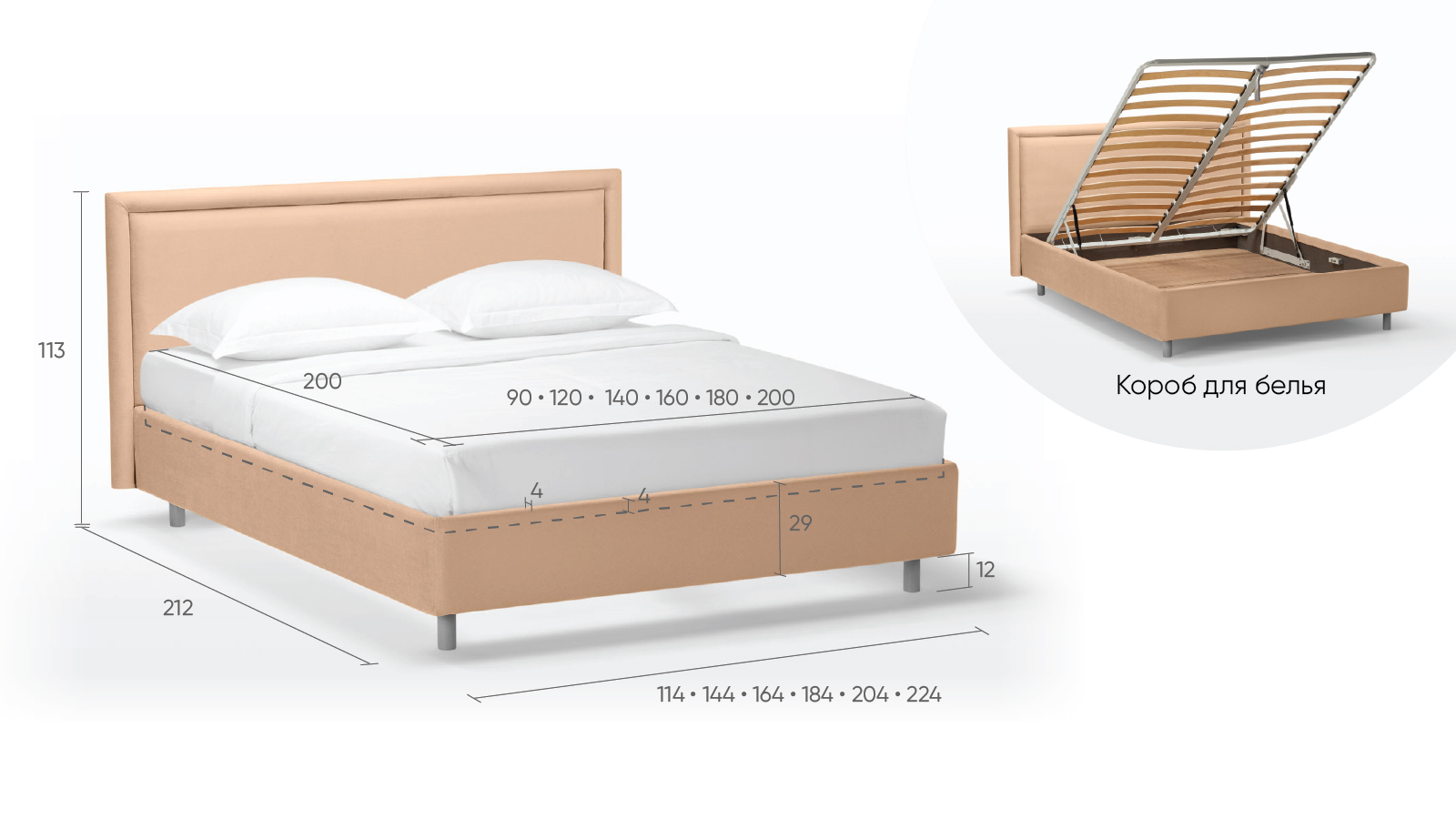 Спальное место: 2000х1400 мм., 2000х1600 мм., 2000х1800 мм.