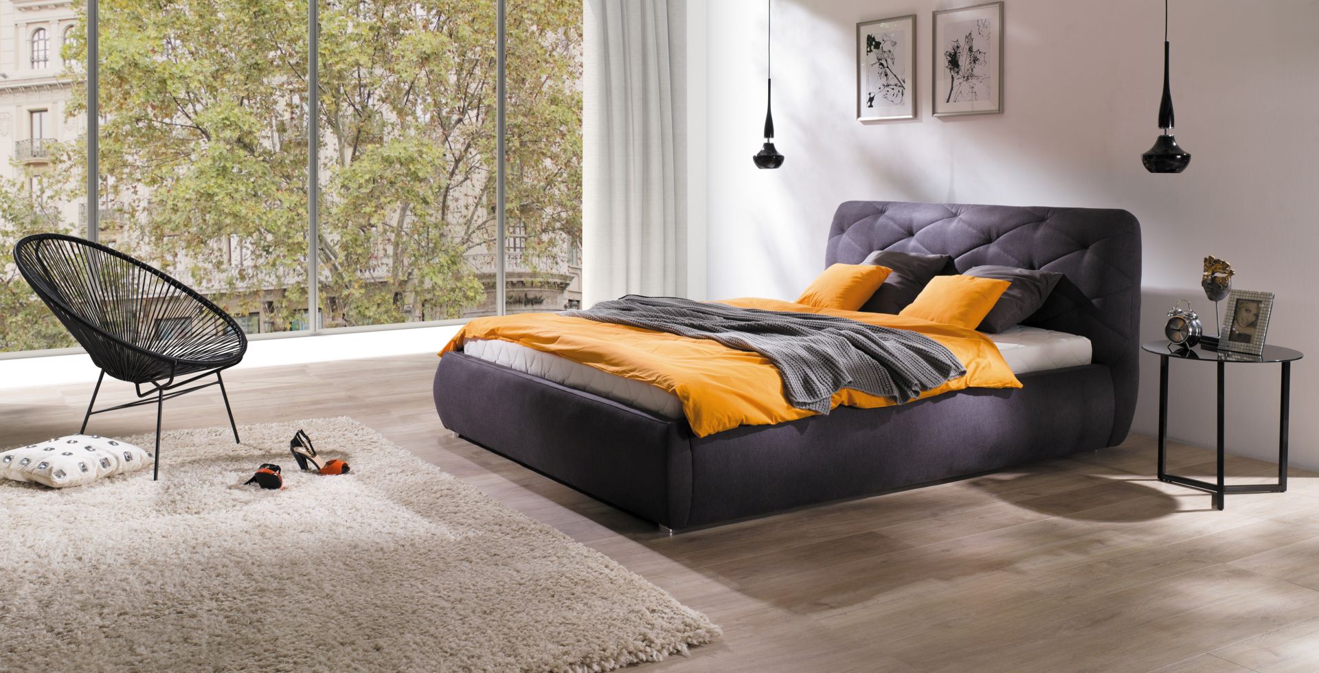 Спальное место (ДхШ): 200х160 см. Материал: МДФ, ЛДСП, фанера, микровелюр.