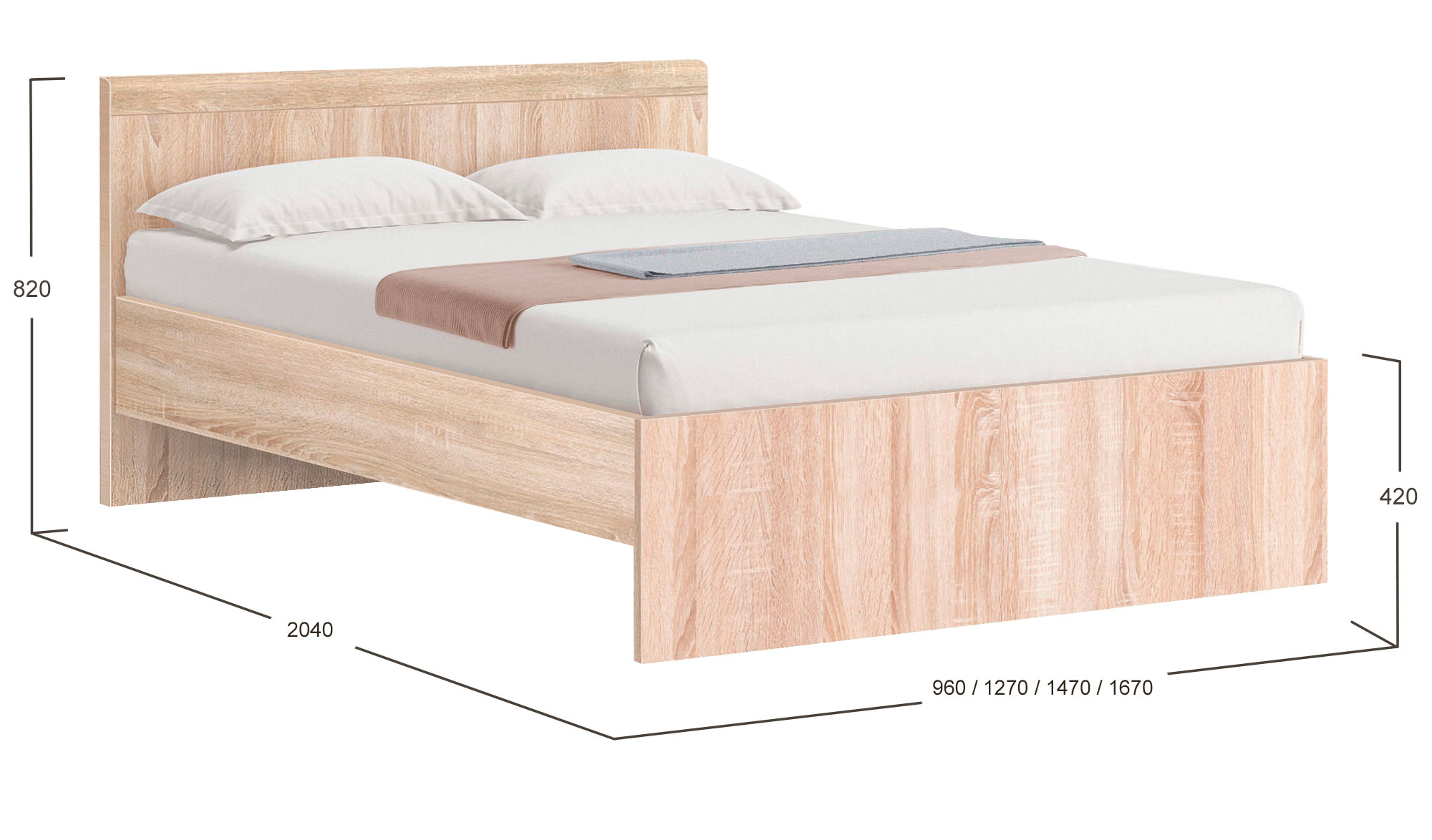 Спальное место (ДхШ): 200х120/140/160 см. Материал: МДФ, ЛДСП, фанера, ткань.