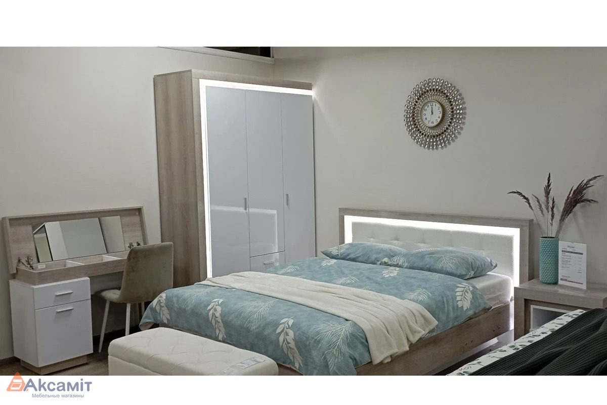 Спальное место (ДхШ): 200х120/140/160 см. Материал: МДФ, ЛДСП, фанера, ткань.