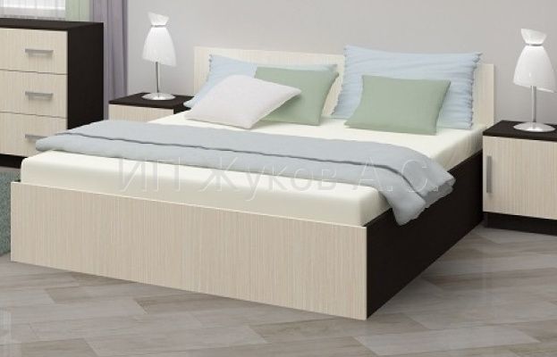 Спальное место: 160x200 см. Материал: ДСП, ткань.