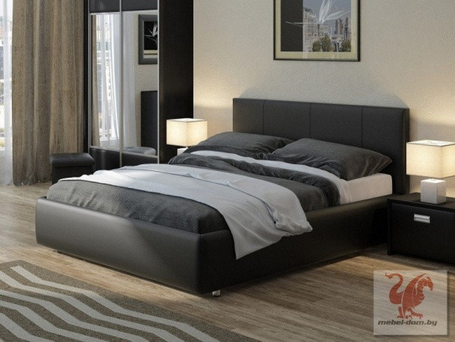 код 101258Экокожа черного цвета. Тонкое и мягкое изголовье. Хромированные опоры.