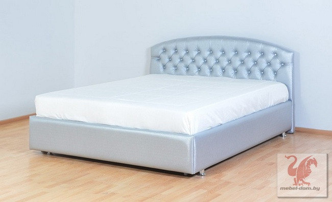 код 101265Светло-голубая обивка из экокожи. Изголовье декорировано стяжкой. Хромированные ножки.