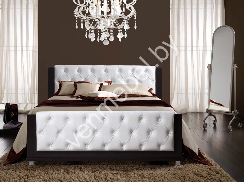 Кровать двуспальная «Катарина» представлена в современном дизайне, который сочетает в себе простоту форм и элегантное оформление кровати. Мягкое изголовье и фасад кровати инкрустированы пуговицами, составляющими неповторимый дизайн. Кровать устанавливается на пол при помощи прочных металлических ножек.