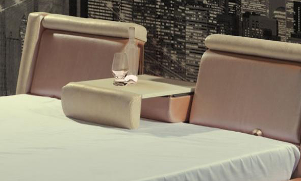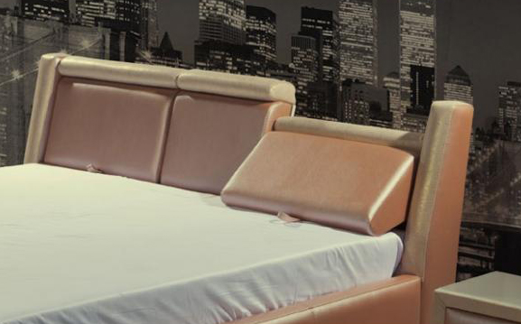 Кровать двуспальная премиум-класса «Клио» оснащена специальным механизмом, который позволяет менять угол наклона спинок. Данная модель может быть оборудована на выбор одним из двух качественных ортопедических оснований. В средней части спины находится столик, выполненный из шпонированного МДФ.