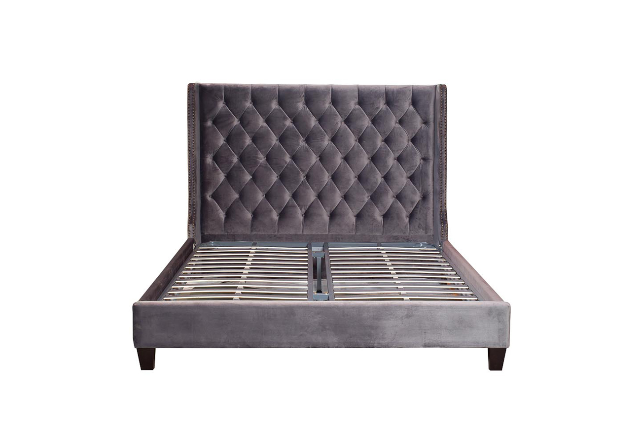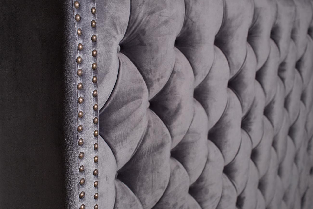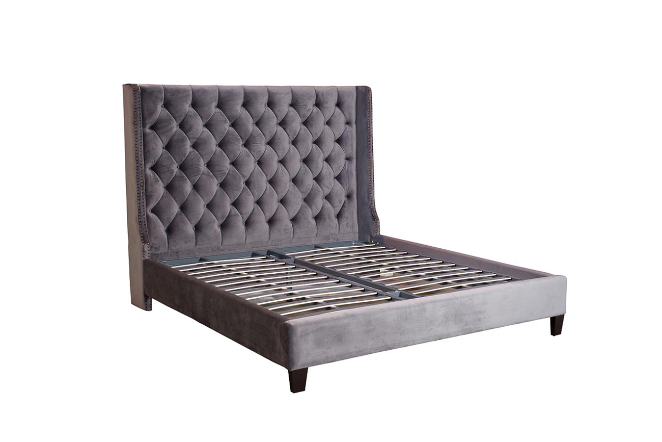 код 107345Материалы: Велюр серый, дерево. Высокое изголовье.
