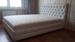 Практичная двуспальная кровать. Угловая конструкция. Встроенные полки в изголовье. Изготавливается из высококачественного ЛДСП.