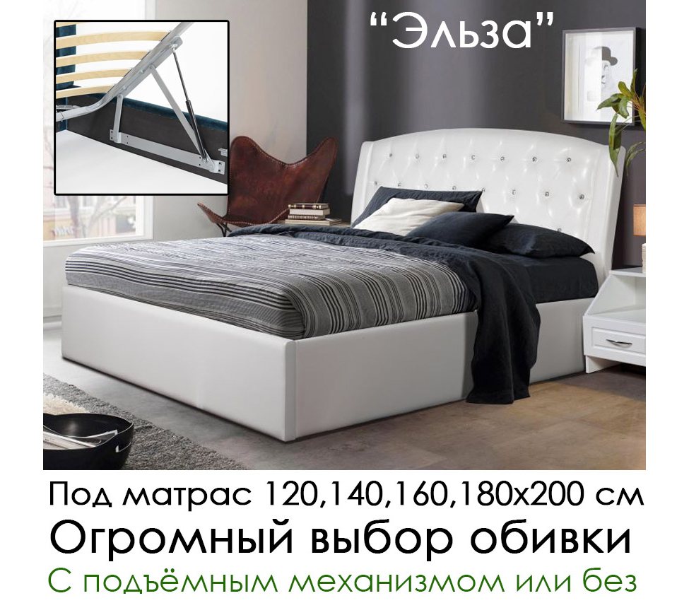 Кровать «Эльза» (под заказ, выбор размера 120, 140, 160, 180, основания и обивки)