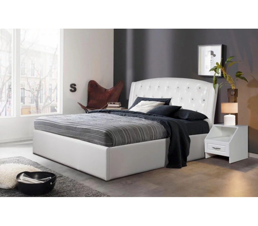 Спальное место: 180х200 см. Материал: ЛДСП, МДФ покрытый плёнкой.