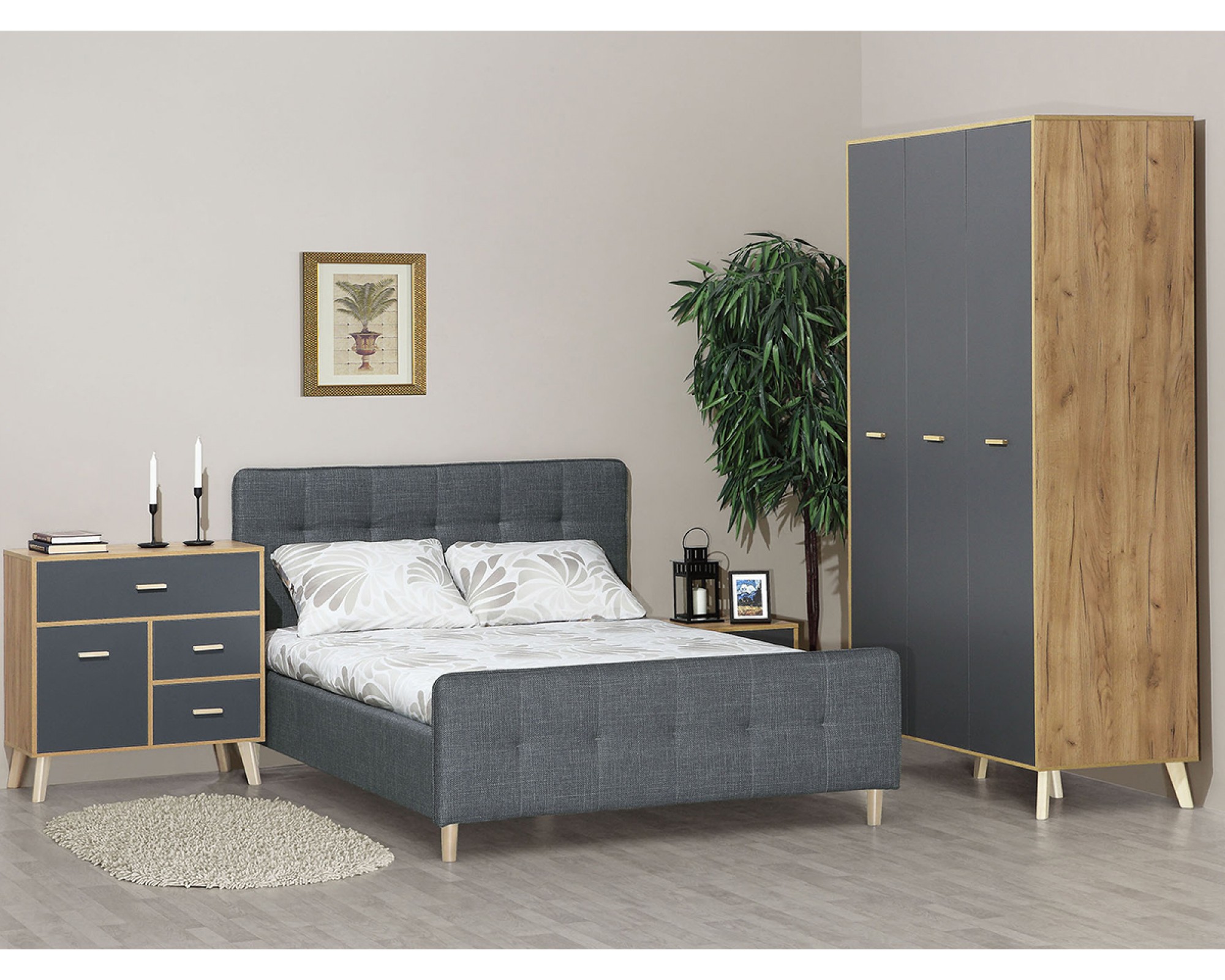 Кровать «Сканди МН-036-20-180(1)» (Графит, Дуб Вотан)
