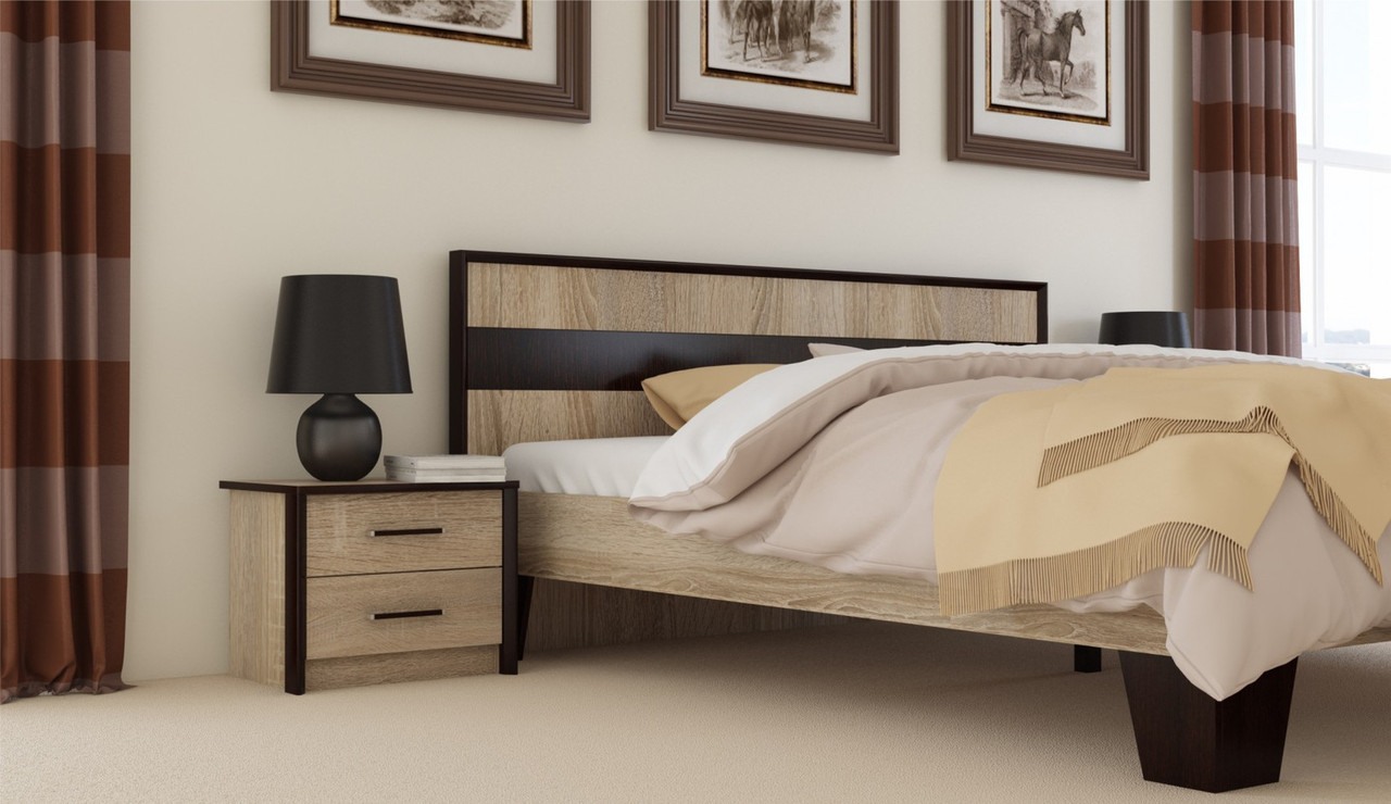Спальное место: 160x200 см. Материал: ЛДСП.