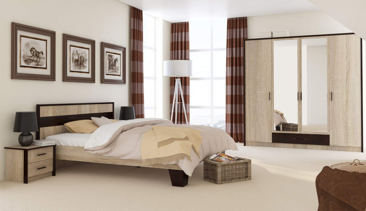 Кровать Эшли - выполнена в стиле минимализм: предельная лаконичность и простота, строгие геометрические очертания. Изголовье выполнено из ЛДСП с декоративной вставкой темного цвета, по периметру - контрастный профиль из МДФ. Сочетание темных ножек трапецевидной формы и кромки изножья цвета венге со светлым корпусом кровати придает кровати легкость и выразительность.