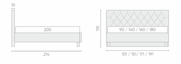 Спальное место (ДхШ): 200х90/140/160/180 см.