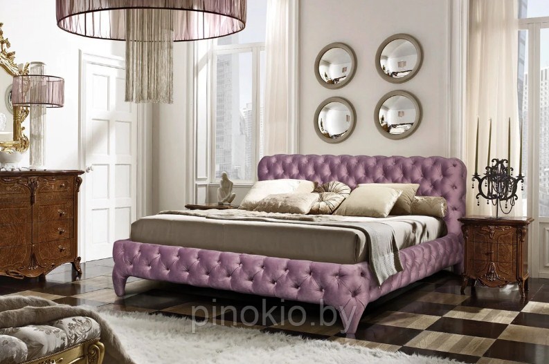 код 104045Стильная кровать с каретной стяжкой по всему периметру. Различные виды комплектации.
