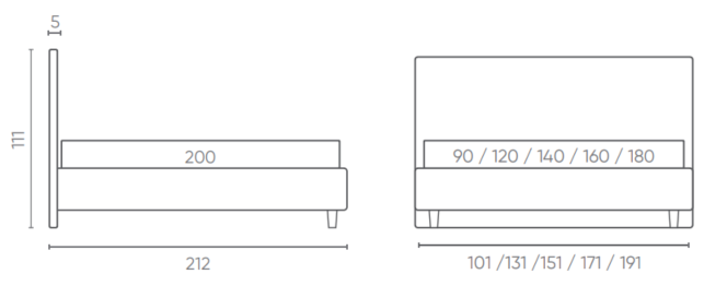 Спальное место (ДхШ): 200х120/140/160/180 см. Материал: МДФ, ЛДСП, фанера, ткань.