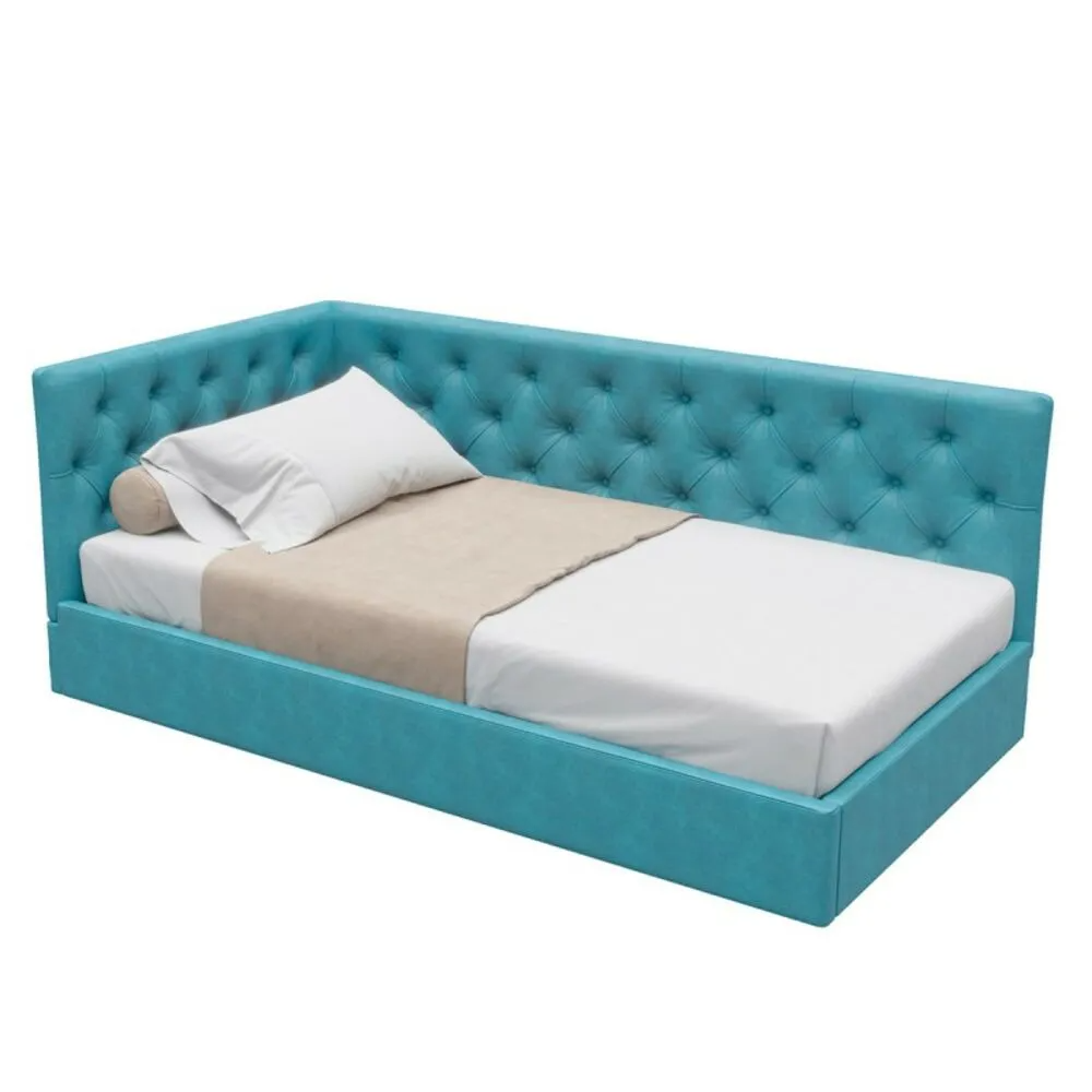 Кровать доступна для заказа в различных вариантах обивочной ткани.