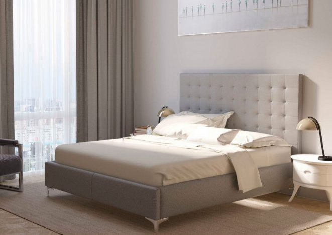 Современная двуспальная кровать серого цвета