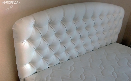 Изголовье и фасад с мягкой вставкой со стяжкой. Цвет: белый. Любой размер и ткань. Выезд дизайнера на дом.