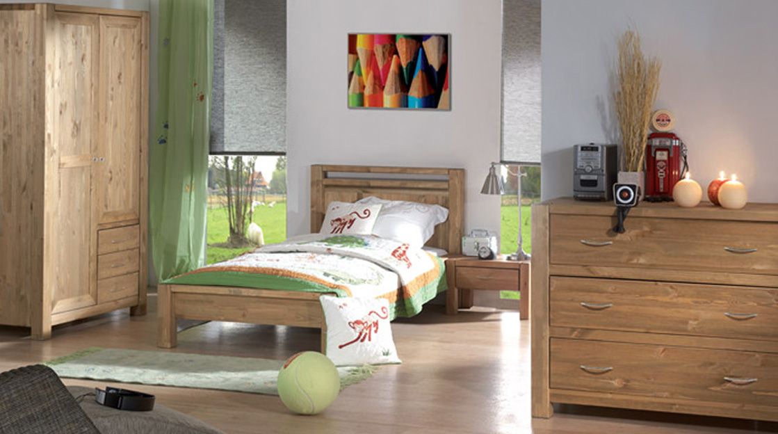 Размер спального места: 90x200 см. Материал: массив сосны.