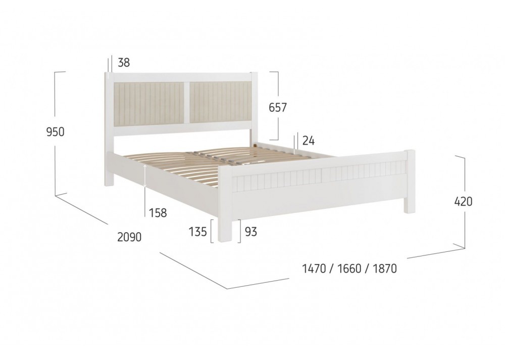 Элегантная кровать «Фрида» выполнена из массива сосны. Сочетание вертикальных линий отстрочки мягкой вставки изголовья гармонирует с повторяющей их фрезеровкой на изножье кровати, что придаёт модели элегантный вид и создаёт атмосферу уюта и комфорта.