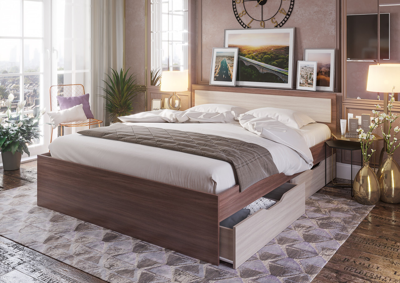 Кровать «Гармония 1,6м» ясень шимо темный/ясень шимо светлый КР-604 с ящиками
