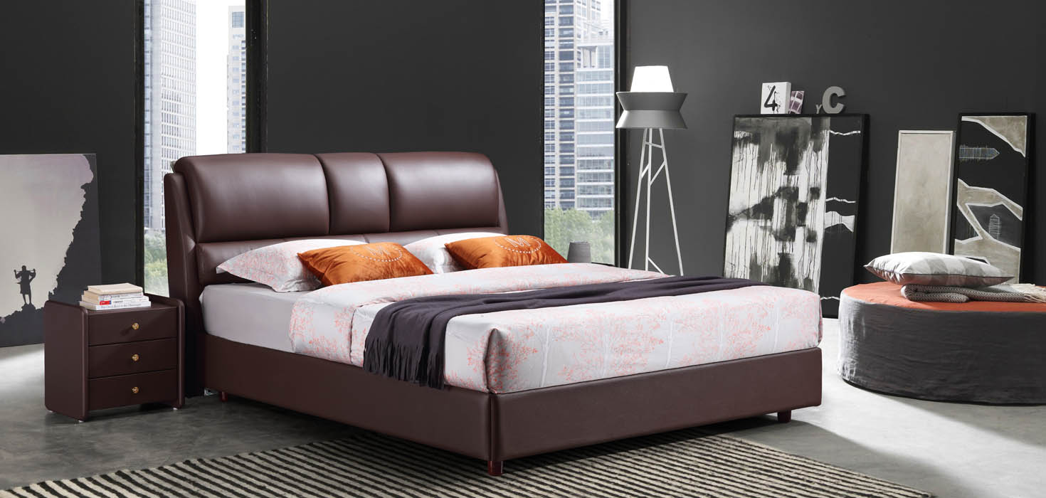 Элегантная кровать с декоративной обивкой: корпус и изголовье покрыто равномерно стеганой обивкой.