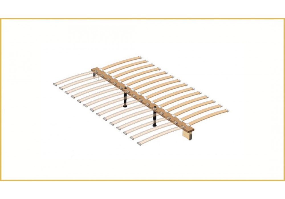 Цена указана за каркас кровати, основание приобретается дополнительно. Основанием может служить металлокаркас на пяти опорах или комплектующие под двусторонний матрас