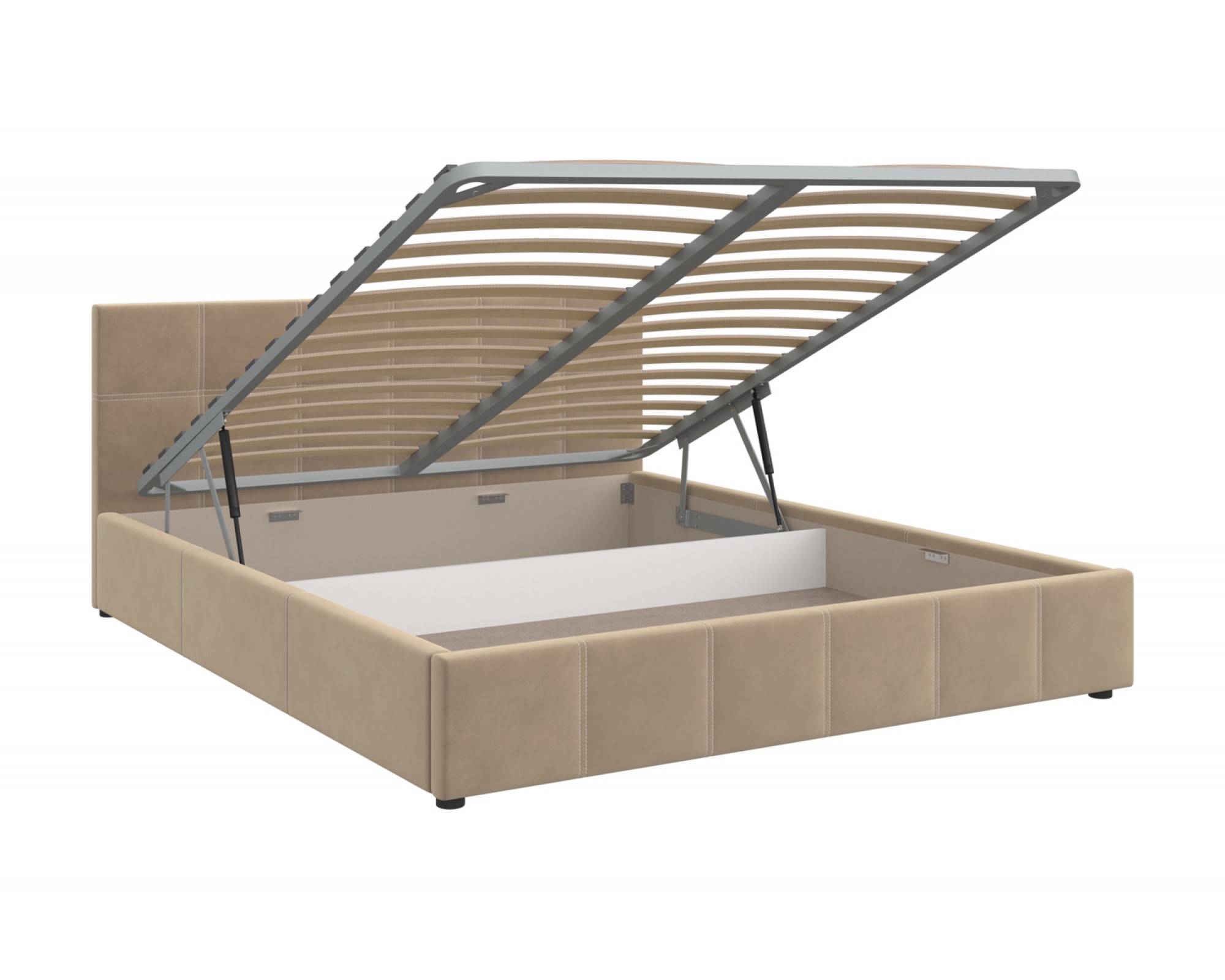 Интерьерная кровать ГРЕТА комплектуется металлокаркасным основанием (вариант 1) или металлокаркасом с подъемным механизмом с газовым амортизатором (газлифтом) (вариант 2). Кровати БРАВОмебель имеют надежный каркас из МДФ, фанеры и ЛДСП. В качестве наполнителя используются различные материалы, такие как холкон, поролон и периотек, которые обеспечивают мягкость, комфорт и долговечность изделия. Внешний слой обивки кровати выполнен из износостойкой качественной ткани в цветах латте, серо-бежевый, пшеничный, светло-серый, каменный, морской и зимняя мята.