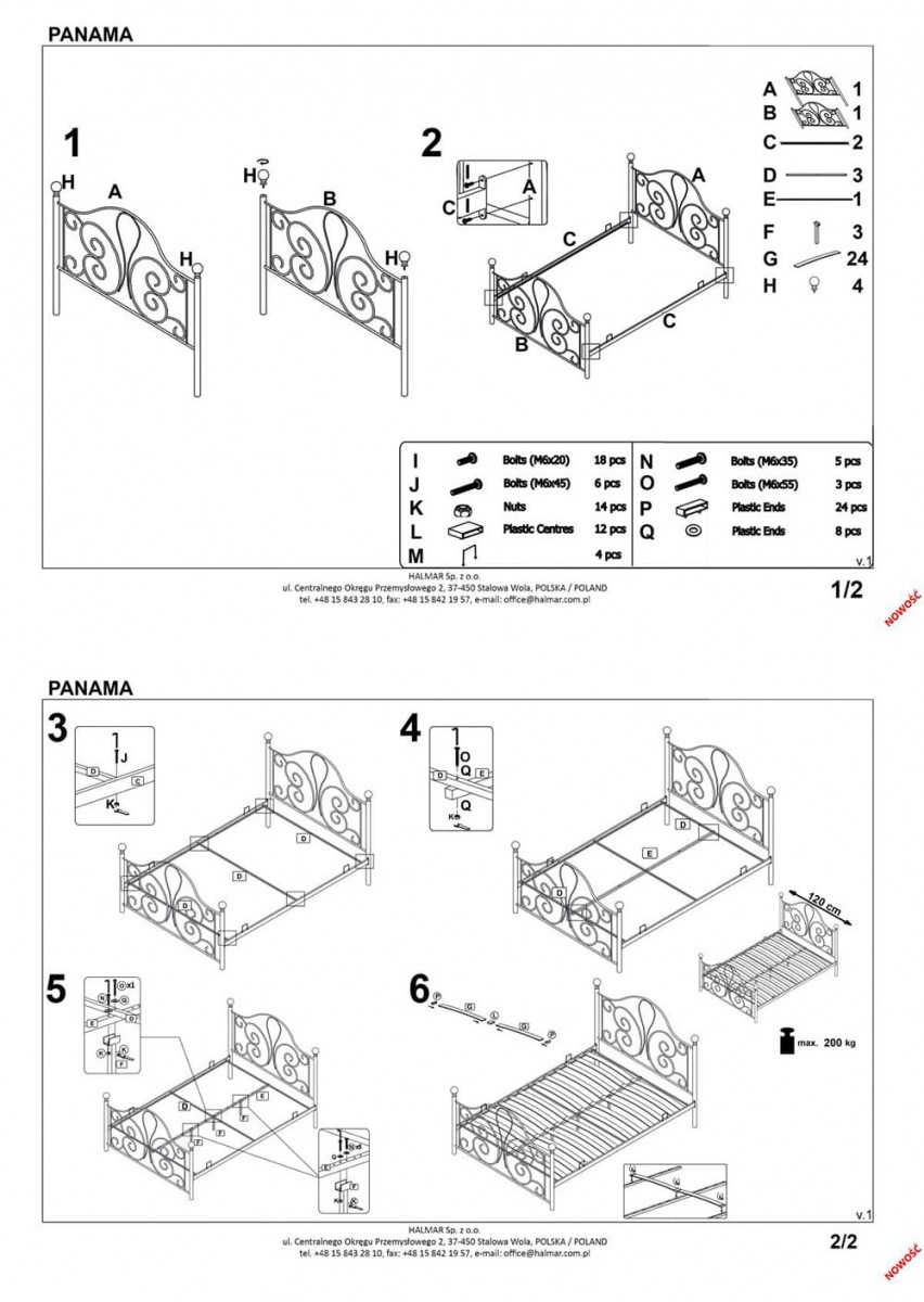Спальное место: 120x200 см. Материал: металл.