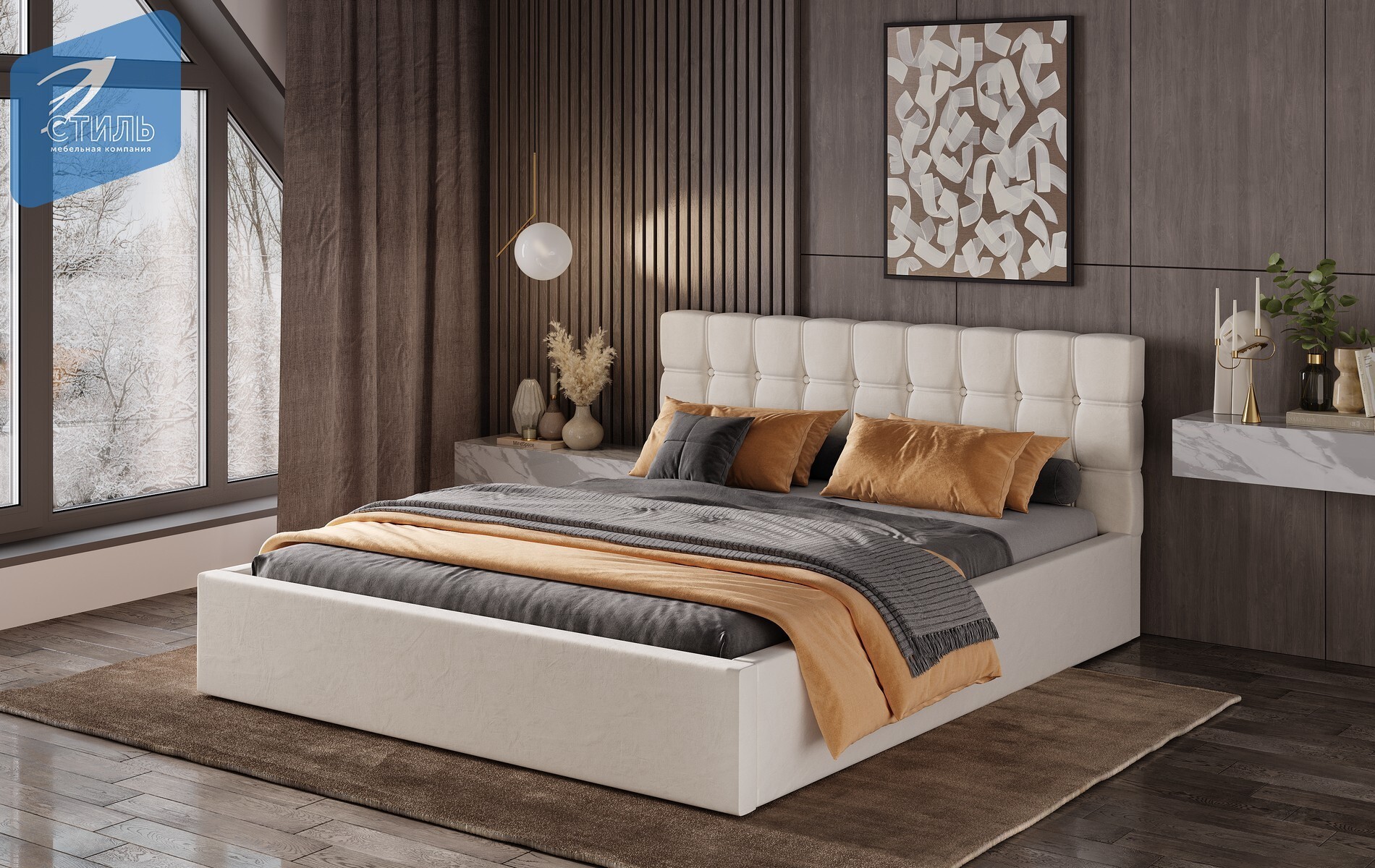 Кровать интерьерная «Андромеда 1,6м» ткань белая КР-001