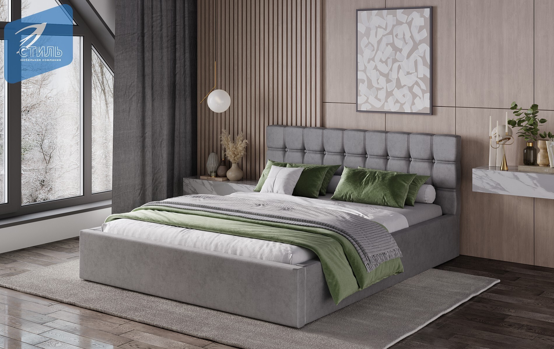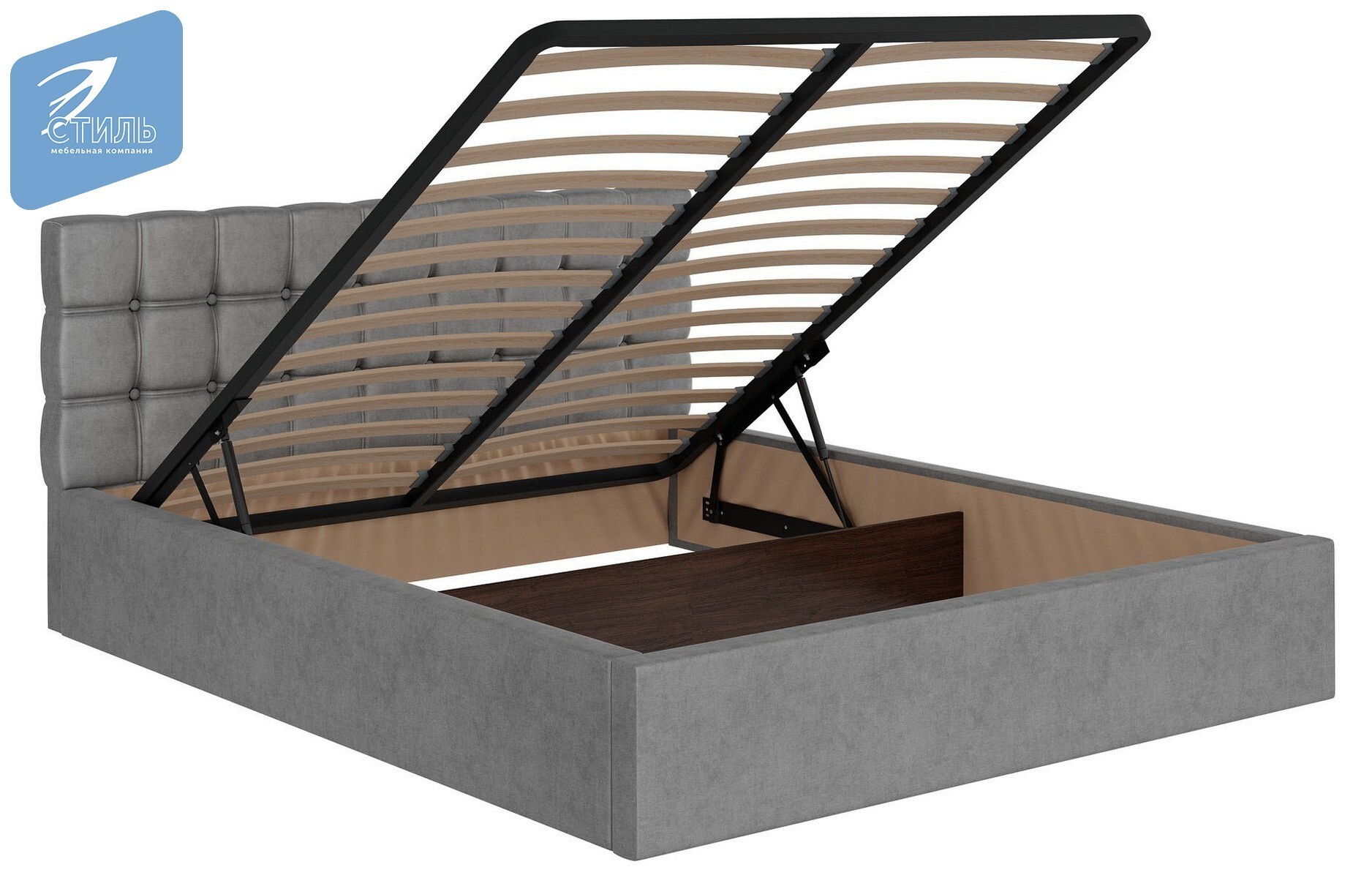 Кровать интерьерная «Андромеда 1,6м» ткань серая КР-001 с подъемным механизмом