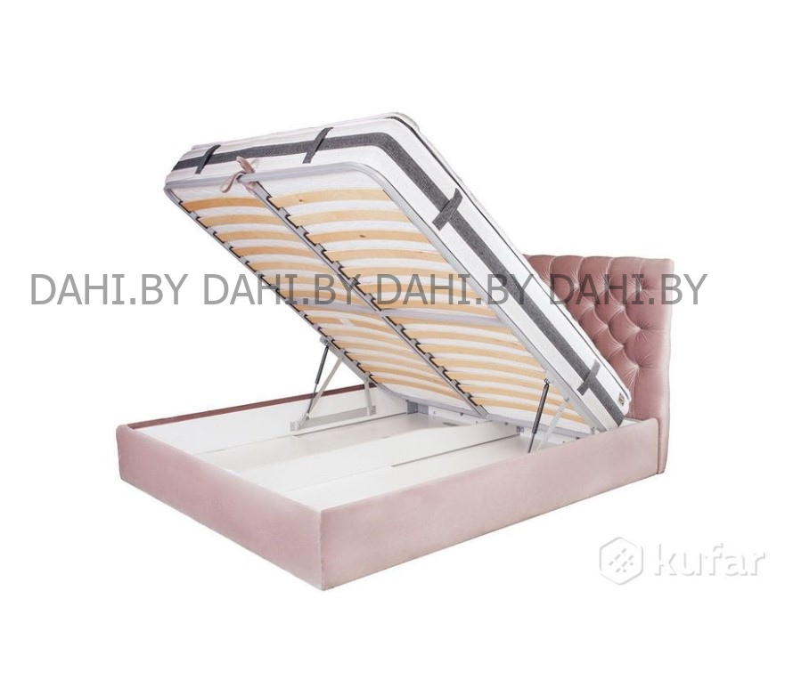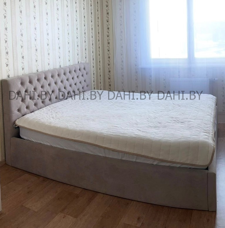 Мягкая кровать на металлическом основании, с подъёмным механизмом.