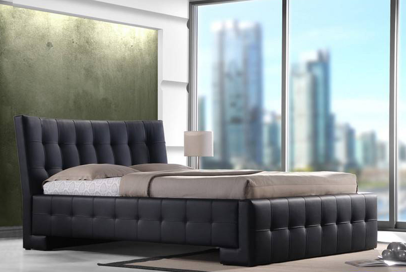 Кровать из экокожи с высоким изголовьем