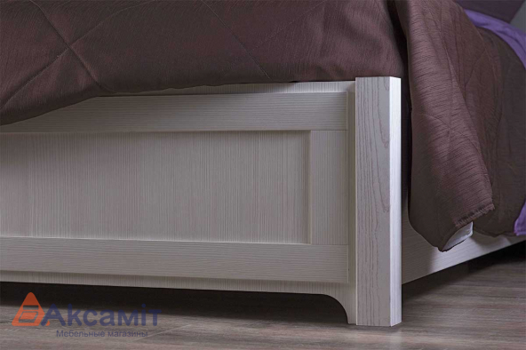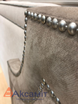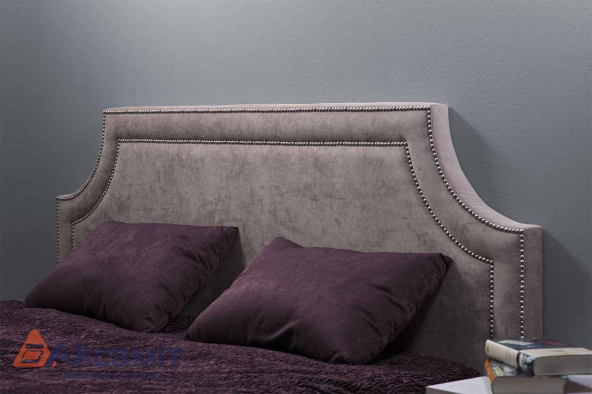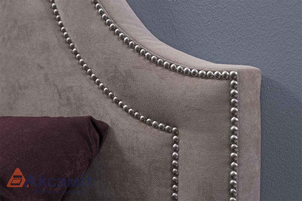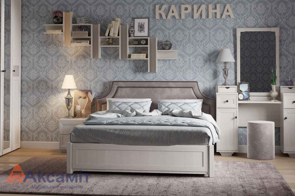Традиционная кровать из коллекции Карина сочетает в себе исключительный комфорт и эстетику в интерьере спальни. Самые популярные габариты кровати - 160 на 200 мм - обеспечат комфортный отдых и не загромождают пространство. Велюровое изголовье из микрофибры в приглушенной гамме серо-коричневого цвета не будет требовать соблюдения какого-то определенного стиля в интерьере спальни, но позволит наслаждаться уютом и затишьем в комнате, предназначенной для отдыха. Обивка из нежной ткани крепится к фигурному изголовью при помощи строчки из мебельных гвоздиков. Их тусклый блеск поддержан фурнитурой остальных предметов спального гарнитура, например, в серебристой патине металлических ручек Карина 555 Шкаф для одежды и белья. Аккуратное изножье кровати декорировано профилем МДФ, который добавляет этой привычной детали многослойность и объем.