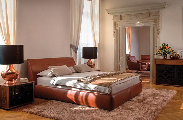 Мягкая кровать • Размеры матраса 160 / 180 см x 200 см • Дополнительное оснащение: ящик для постельного белья, открывающийся без особых усилий благодаря современному механизму подъема основания с газлифтами.