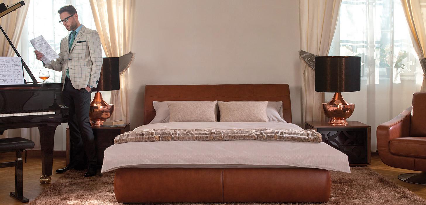 Универсальная модель с современными очертаниями, с низкопрофильным корпусом, опираемом непосредственно на полу. Сверху она украшена невысоким изголовьем, слегка отклоненным назад. Ее обивка прошита по образцу спинки мягкого кресла: в верхней части мягкие арки выделяют зону изголовья. Эта кровать является удобным местом для отдыха – также в положении сидя.