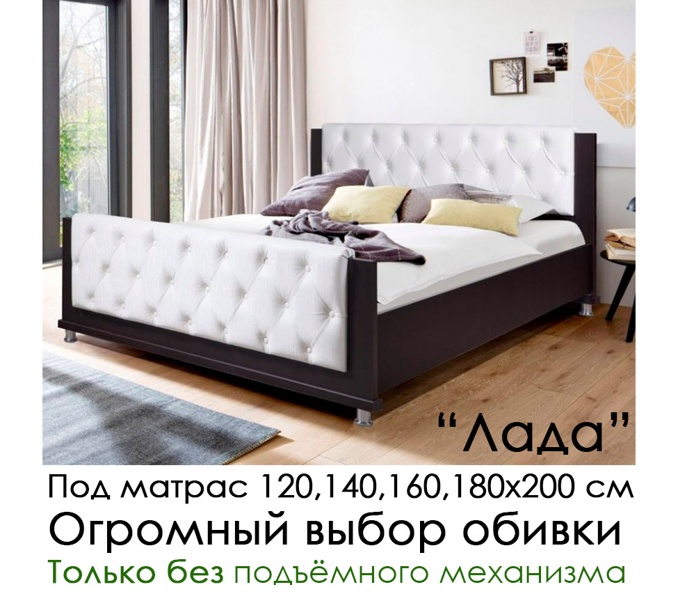 Кровать «Лада» (под заказ, выбор размера 120, 140, 160, 180, основания и обивки)