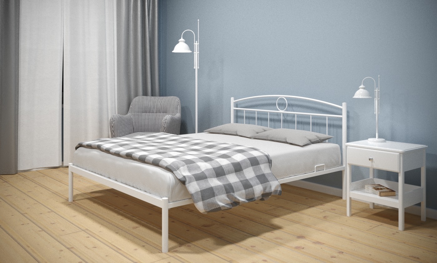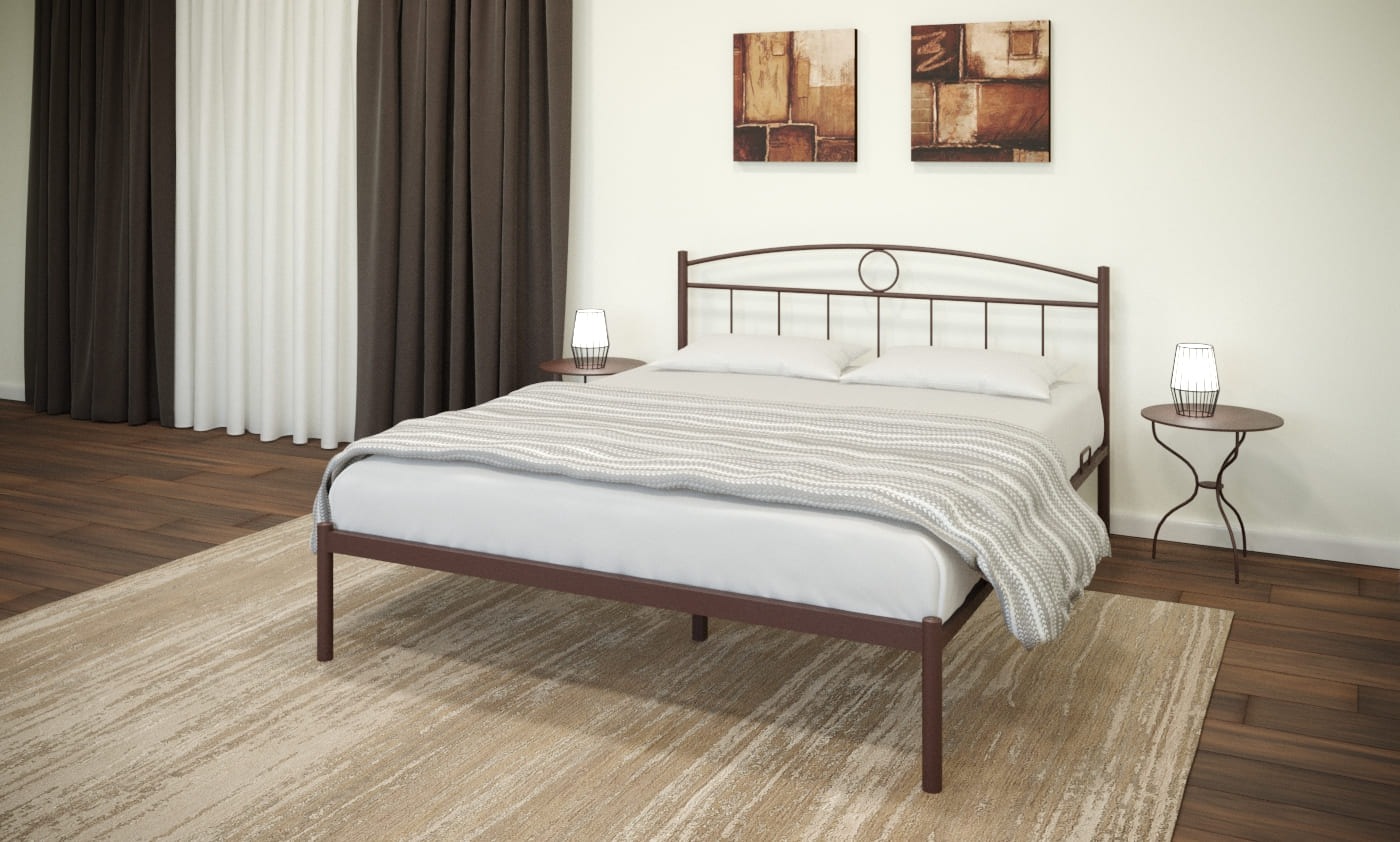 Достаточно строгая и консервативная модель кровати из металла, но при всей своей простоте, она прекрасно впишется в интерьер, будь то классическое направление или более современное. Эта кровать для тех, кто не любит много лишнего декора, а предпочитает элегантную сдержанность.