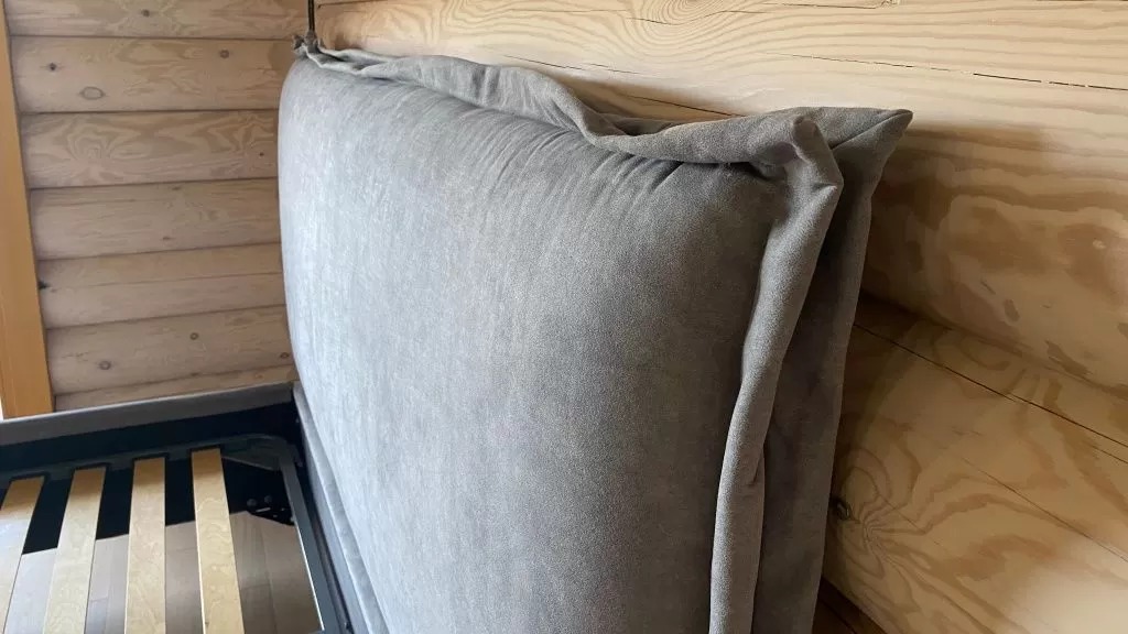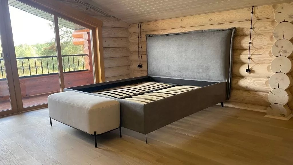 Каркасы изголовья, царг и изножья кровати изготовлены из технически высушенного бруса хвойных пород и шлифованной водостойкой березовой фанеры, отличающихся высокой прочностью и долговечностью.
