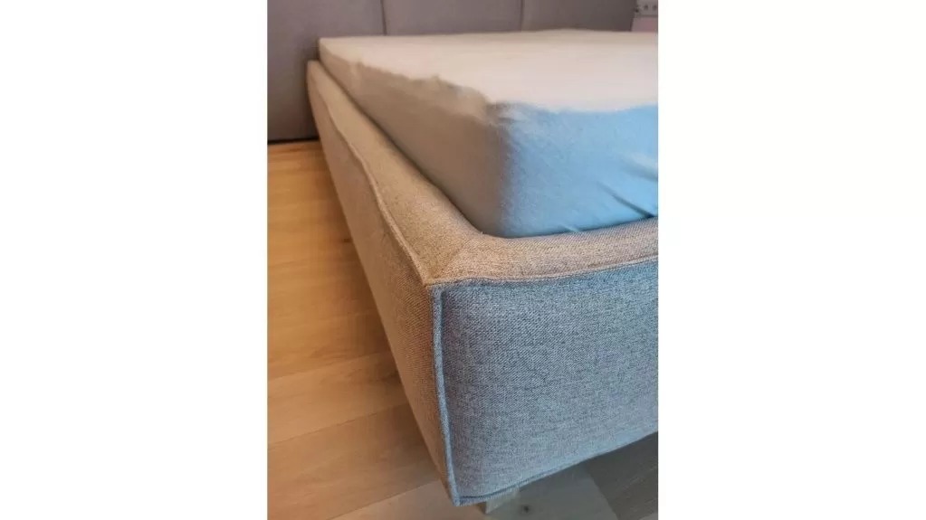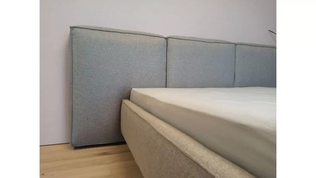 Конструктивные особенности кровати и использование ткани в качестве обивки, позволяет по желанию заказчика, изготовить ее в виде цельного съемного чехла, крепящегося к царге при помощи «липучки». Материал обивки подбирается индивидуально.