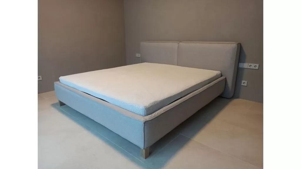 Двуспальная кровать с ортопедическим основанием и мягким изголовьем.