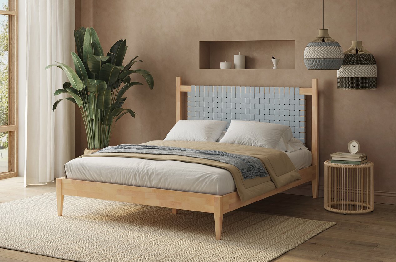 Рамочный дизайн, узоры, плавные формы и высокое изголовье.