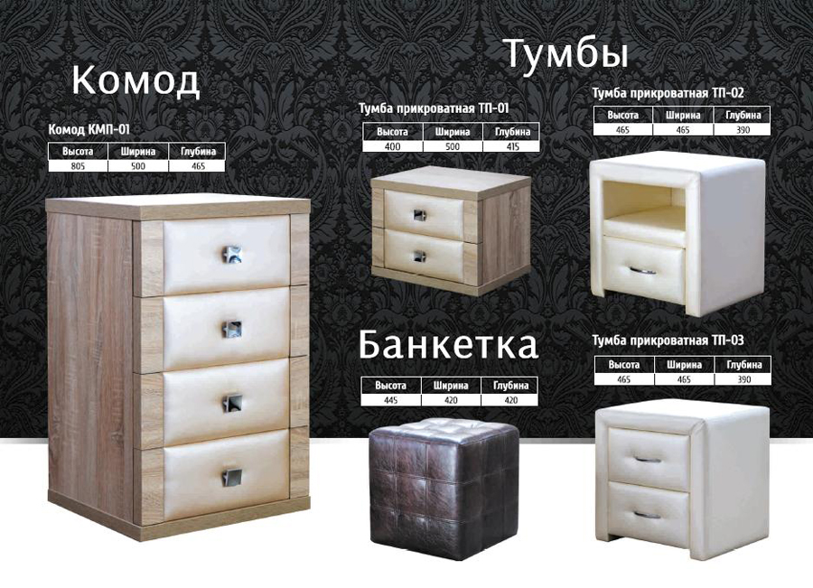 Цена указана за кровать с размером спального места 1400х2000 мм. В комплекте на ваш выбор могут быть прикроватные тумбы на 1 или 2 шуфляды, комод и пуф.