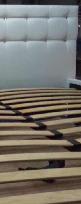 Двуспальная кровать «Линда» станет отличным дополнением в интерьер спальной комнаты. Материалом обивки является качественная экокожа. Белый цвет сделает комнату просторнее и светлее, подарит легкую и спокойную атмосферу. Изголовье кровати красиво украшено стразами.