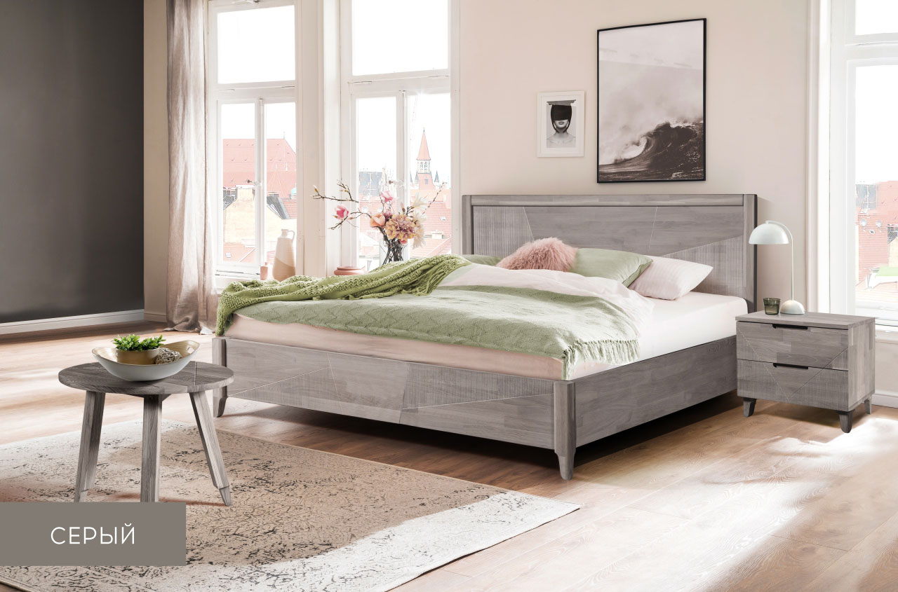 Кровать выполнена в современном лаконичном дизайне, а главный акцент сделан на особый вид отделки – рельефную фрезеровку на изголовье и изножье. Благодаря расходящимся под разными углами линиям рисунка и изящным ножкам она выглядит легко и современно.