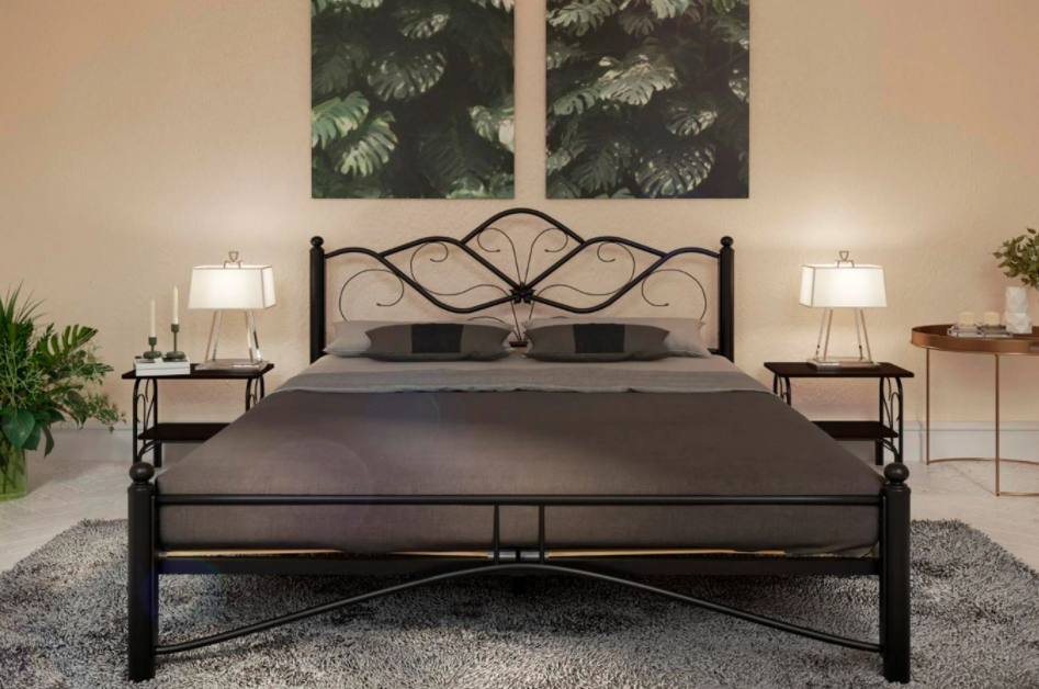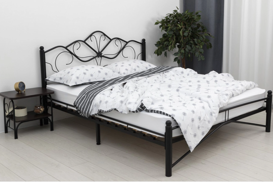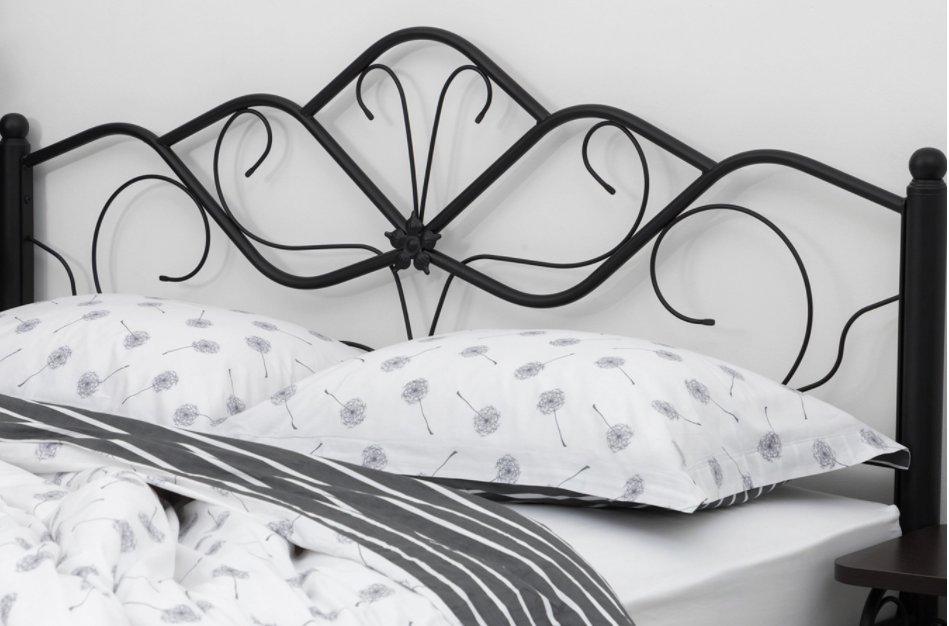 Изящный кованый орнамент изголовья – с растительными мотивами: напоминает лепестки цветка и передает нежность и красоту природных линий, наполняет интерьер атмосферой романтики.