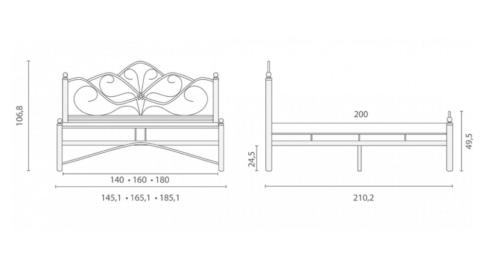Кованая металлическая кровать Luara подчеркнет элегантность и респектабельность интерьера. Открытые спинки и тонкие боковые части (царги) создадут ощущение легкости и «воздушности» – для комфортных расслабления и сна.