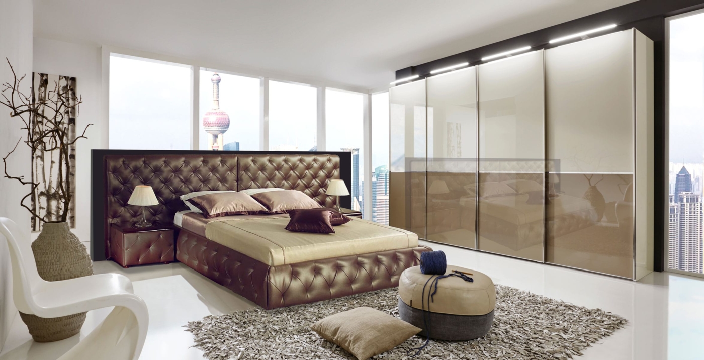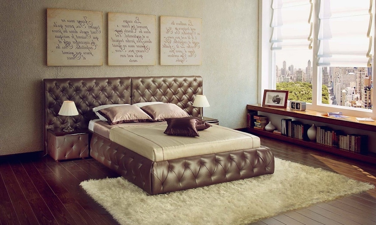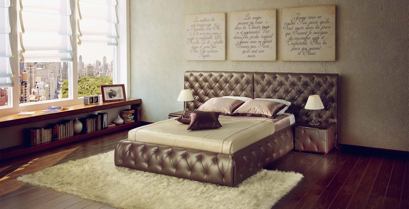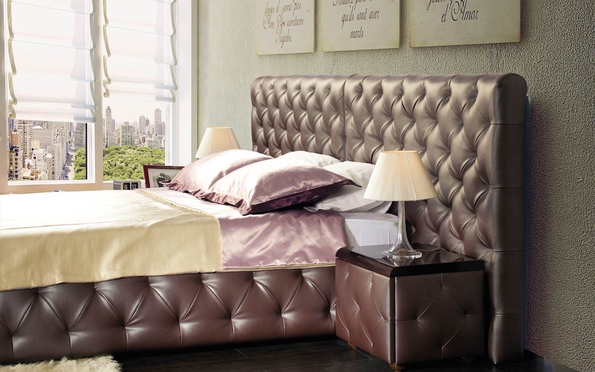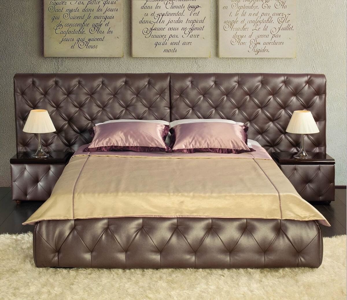 Двуспальная кровать с ортопедическим основанием и мягким изголовьем.